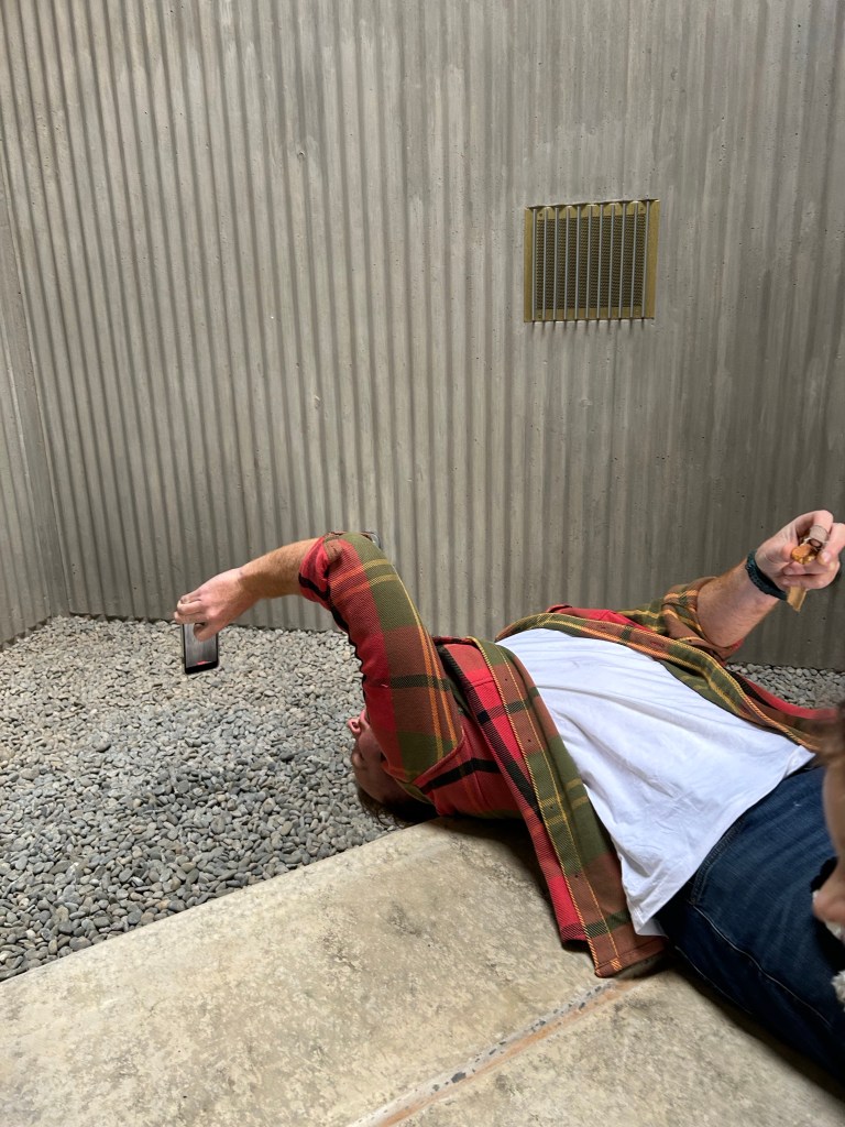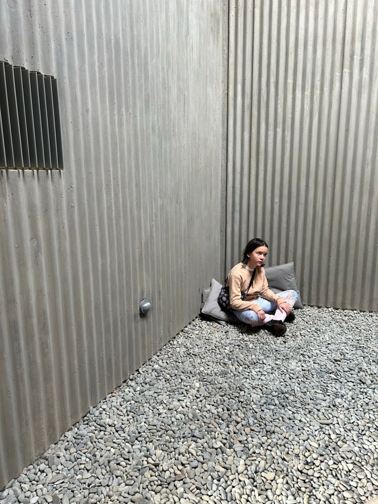We stopped in Dubbo for a dustpan and brush (THAT was the mystery item we forgot). Past Bogan Shire and a town called Warren (“last town named after a bloke for 200km!” said the imaginative tourism marketing team) to arrive in Cobar. This was selected due to the location of the Cobar Sound Chapel, a reclaimed water tank with sound art and architecture by Glenn Murcutt.