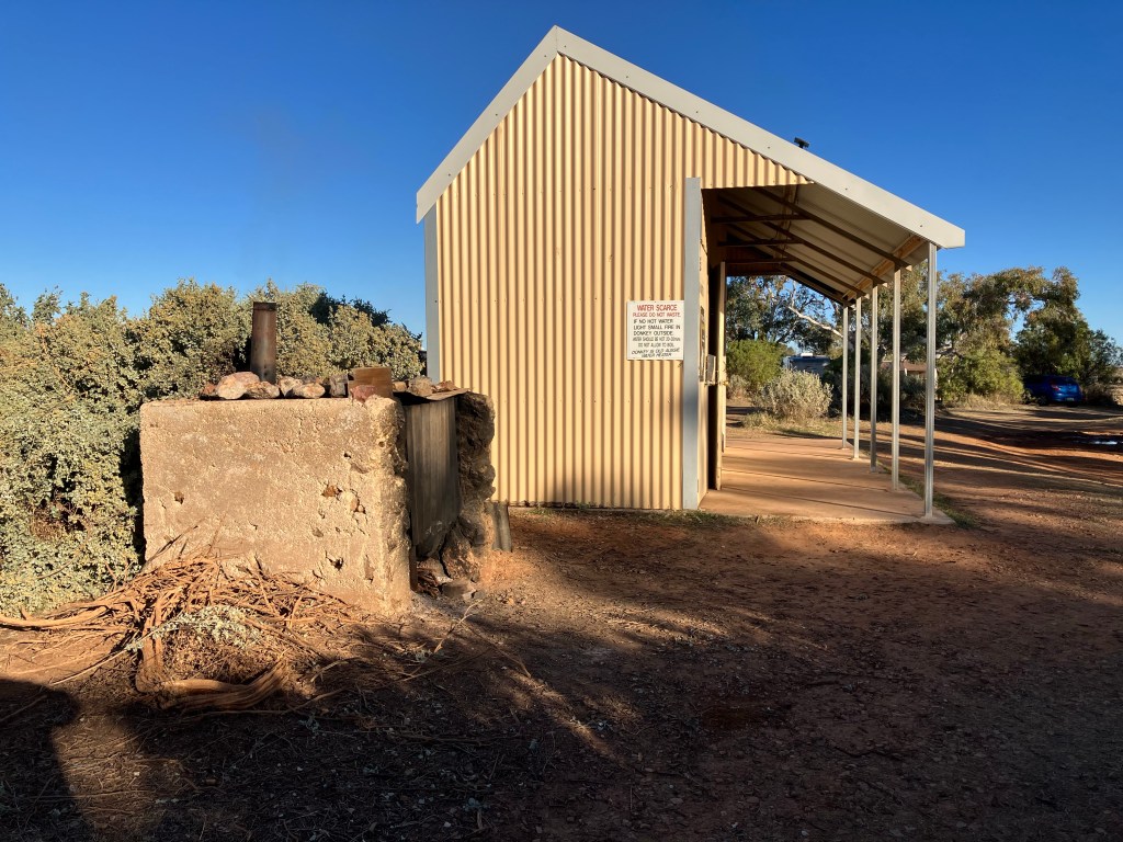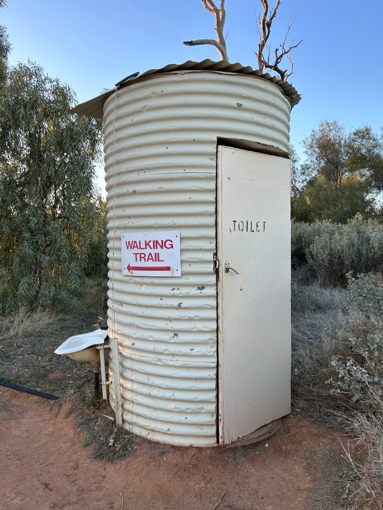 Honesty system at the Farina Campgrounds!Oli picked out this sweet little site! Surrounded by waddy trees and brush, with its own little picnic table and fire ring, it was perfect. Kitchen with a view (this will be another series, sorry).Popping out my Quorn stubbie. Who says you can’t stay zesty fresh while camping?Ominous?Dunny series! This was a cutie cylindrical number.First use of a donkey shower which uses firewood to heat the water