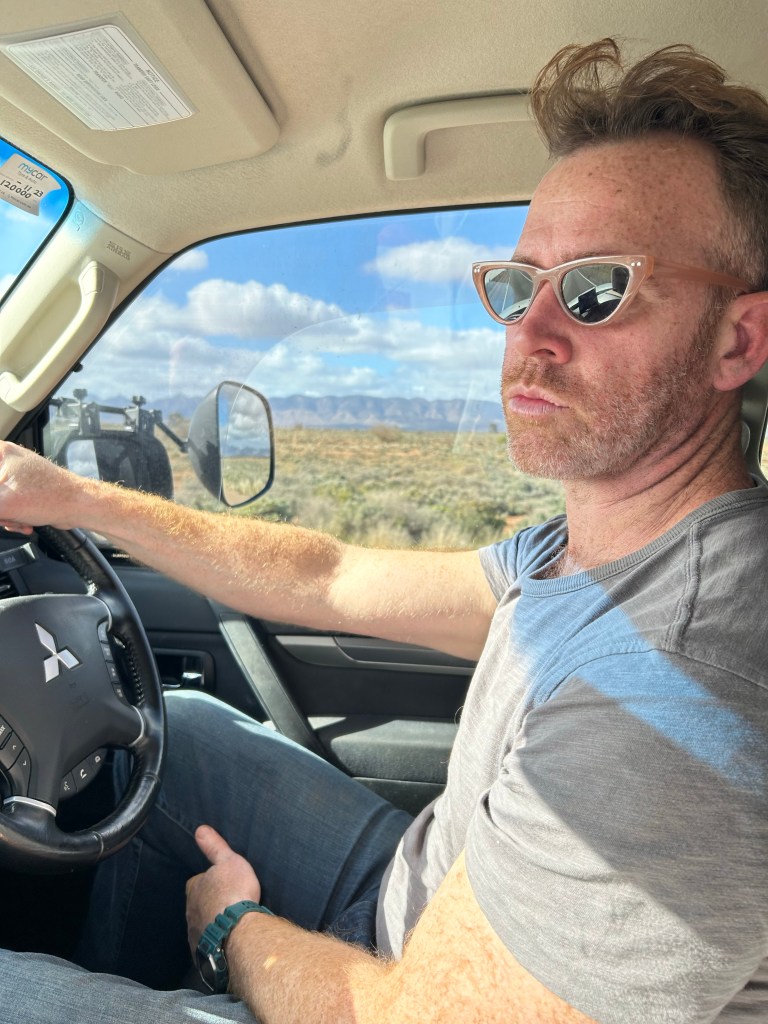 Before heading off to Farina we quickly stopped in Quorn again and look, we passed a bookshop. I think it’s second hand, and is called Quornucopia (or that is the gift shop next door, either way I had to mention it). This town is ripe for puns with popquorn on the menu. Also hot tip: the vegan burger from the Quandong Cafe is 🤌🏼. Quorntastic? Unfortunately, Lux is sick. She slept and rested most of this day. Mitch picked up some more authentically Outback sunnies in Leigh Creek.After ill-advisedly wearing these for a bit.