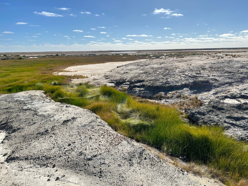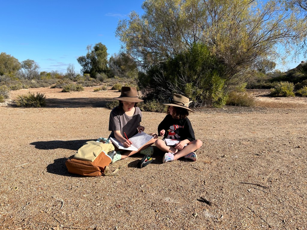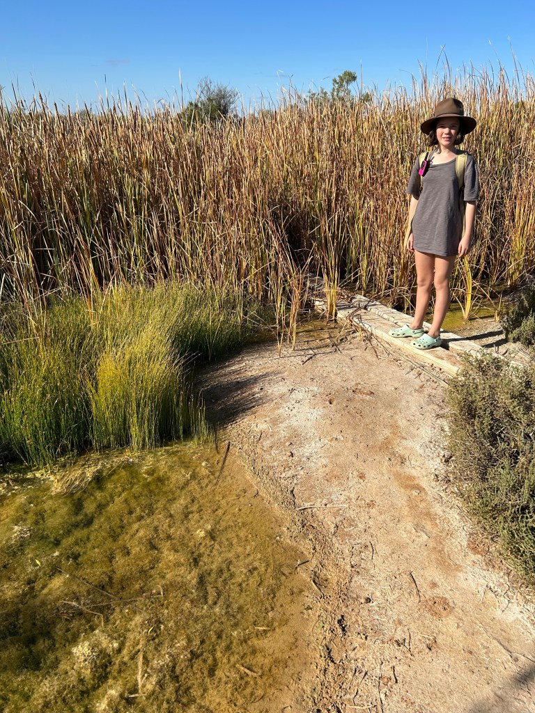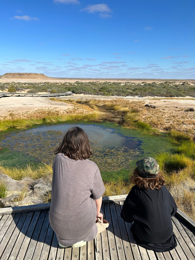 Book exchange at the museum, housed in the old engine driver’s cabin. So yes originally this was a stop on the Old Ghan Railway. Coward Springs had a thriving pub and once again the stop was used as a launch for camels travelling to remote homesteads. It had all fallen into disrepair until the 1990s, when it was purchased and restored. Girls drawing the museum.Wetland walk.Salty clams.This was Barb’s little smiley face. “More symmetrical,” said Scott.How could I not love this place. COFFEE!