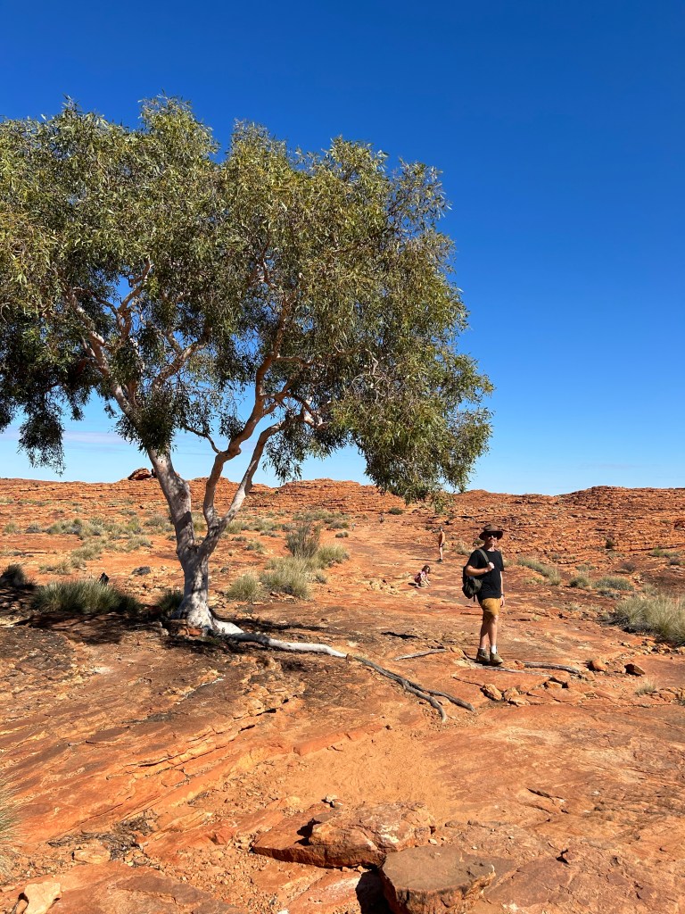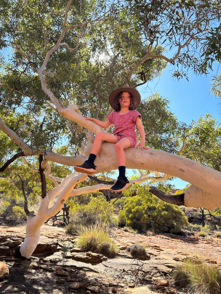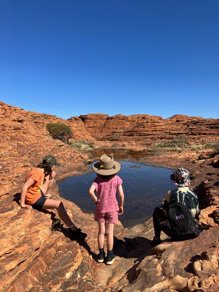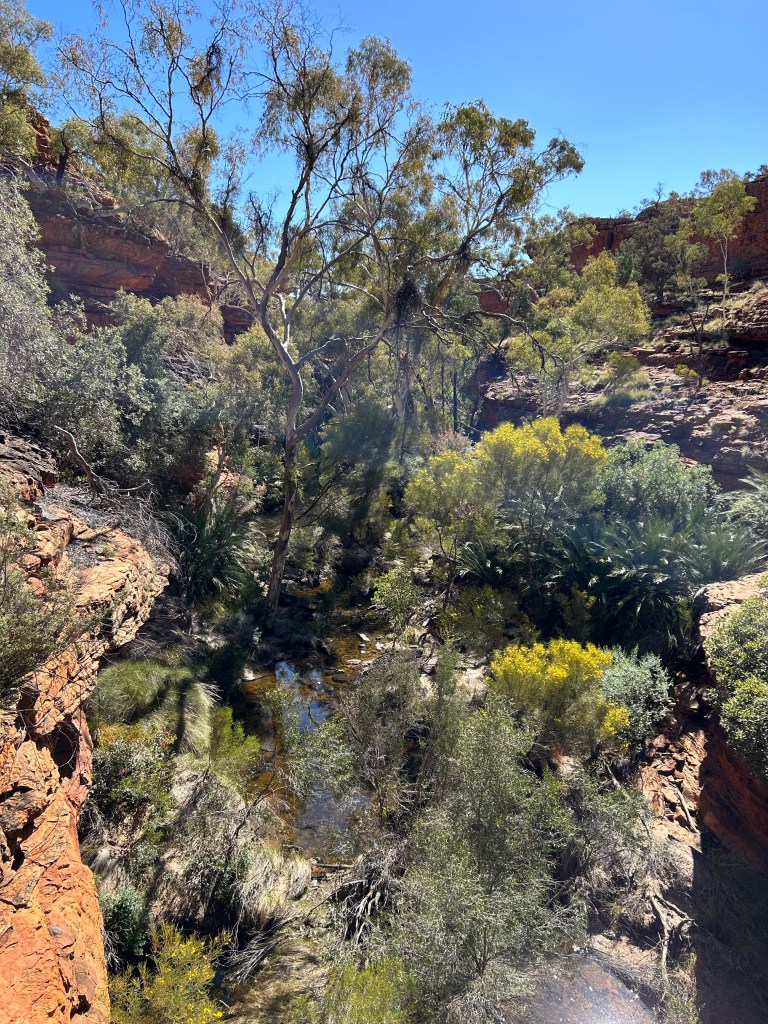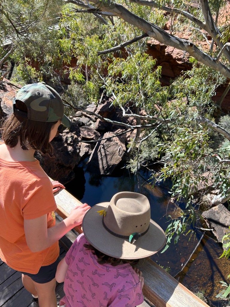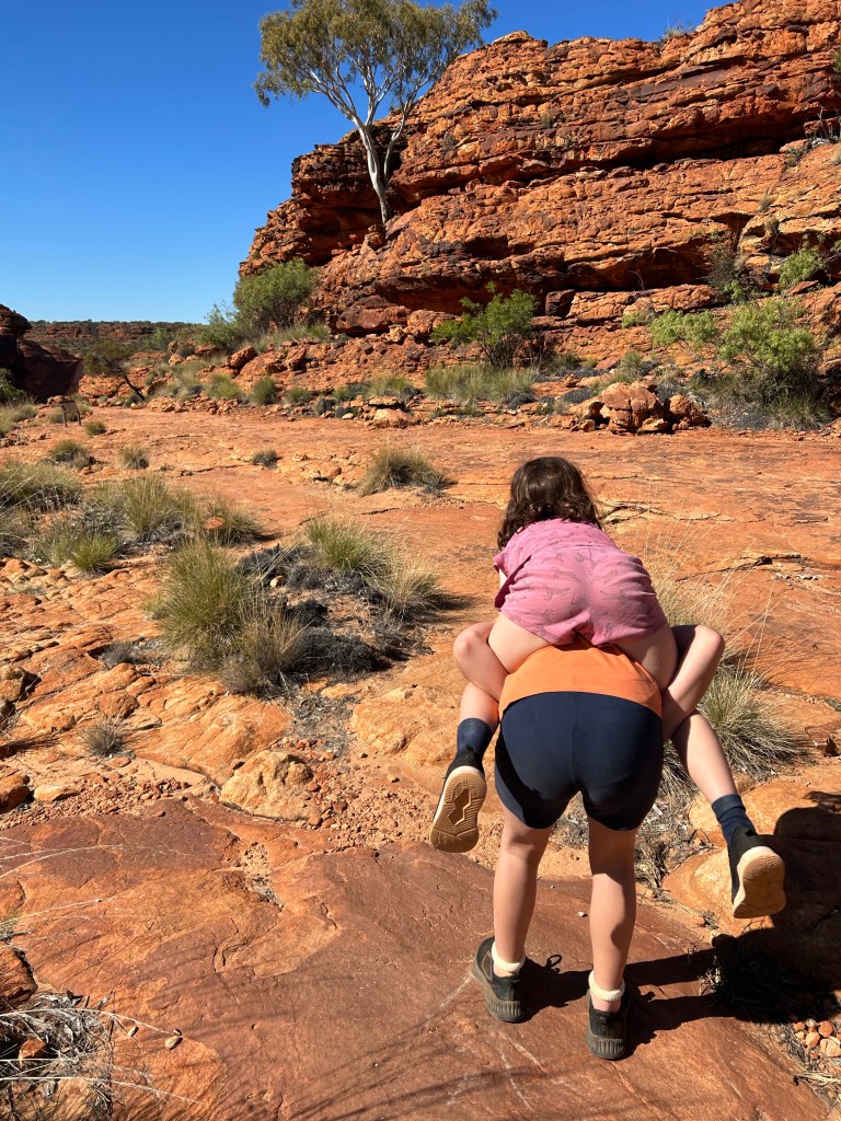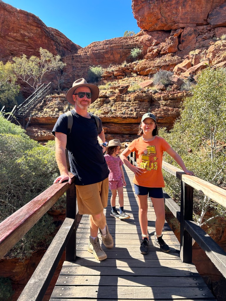 Special shout out to Oli, who always subtly but consistently works hard at motivating Lux using games and distraction techniques. She also occasionally even carries her sister! Deserves a medal!🏅Ancient fossilised sea!A completely different kind of rock to Kata Tjuṯa, this is two types of sandstone, built up over 400 million years. Turns out I am a rock nerd. The rock formations looked like an array of ant hills. But there were so many lush pockets of green, with water holes, eucalyptus trees, acacia, and giant cycads endemic only to this region (and dating back to the time of the dinosaurs).There was a poor lady ahead of us who was afraid of heights and found this part of the walk, with a high wooden bridge and steps built into the cliff-face rather challenging! Break time.Spectacular. Yes, I mean Mitch.