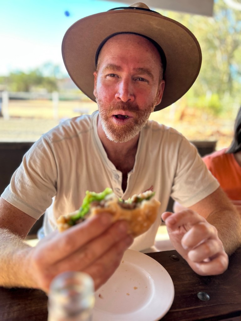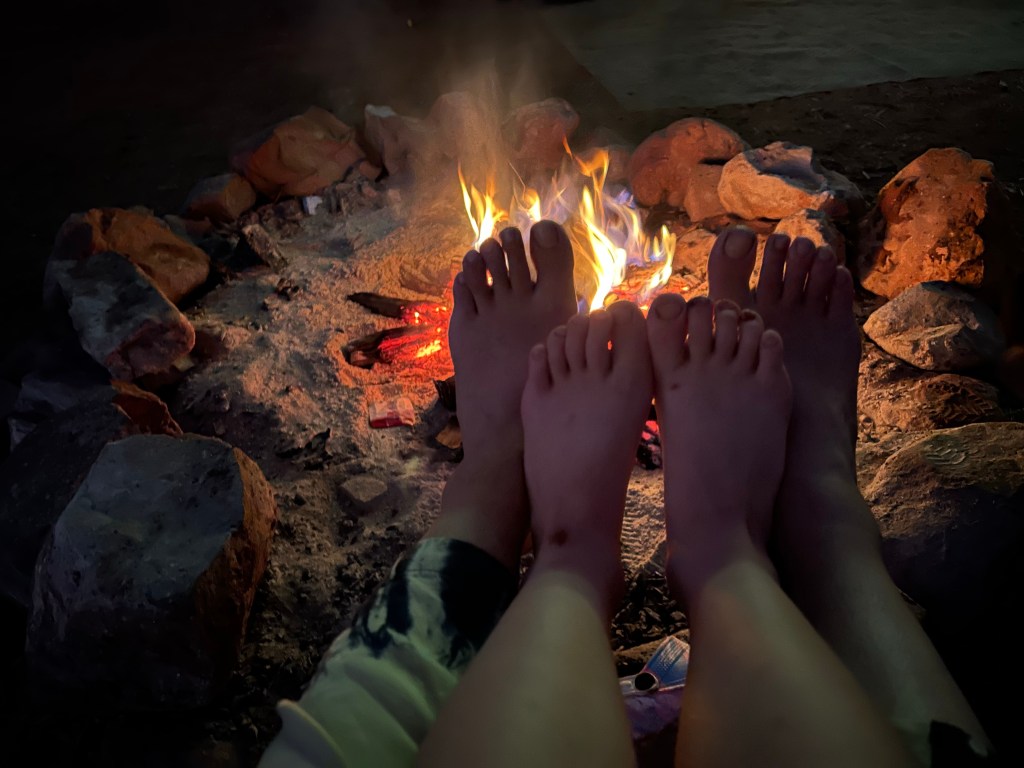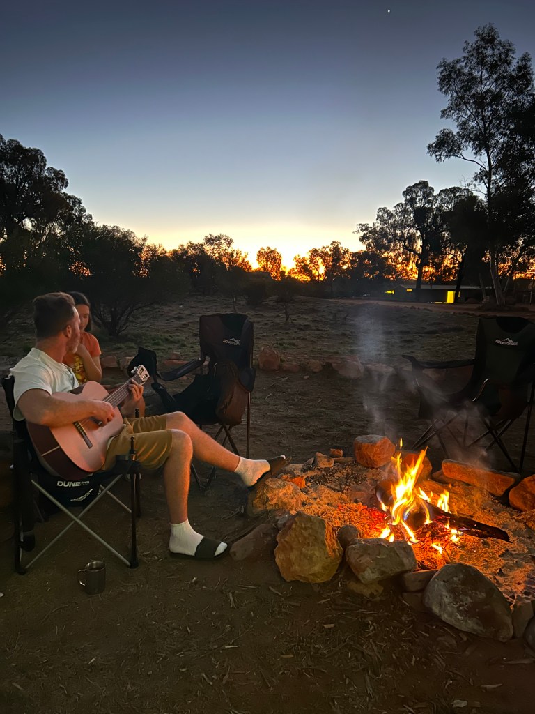 Woops accidentally chewy shot. Camel burger. Catching up on journaling under a she-oak.First dingo sighting!Toasty Lux + mum tootsies.Many singalongs by the fire.
