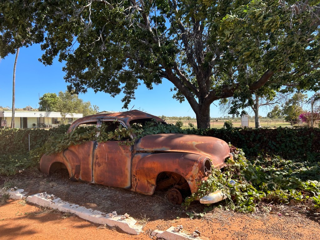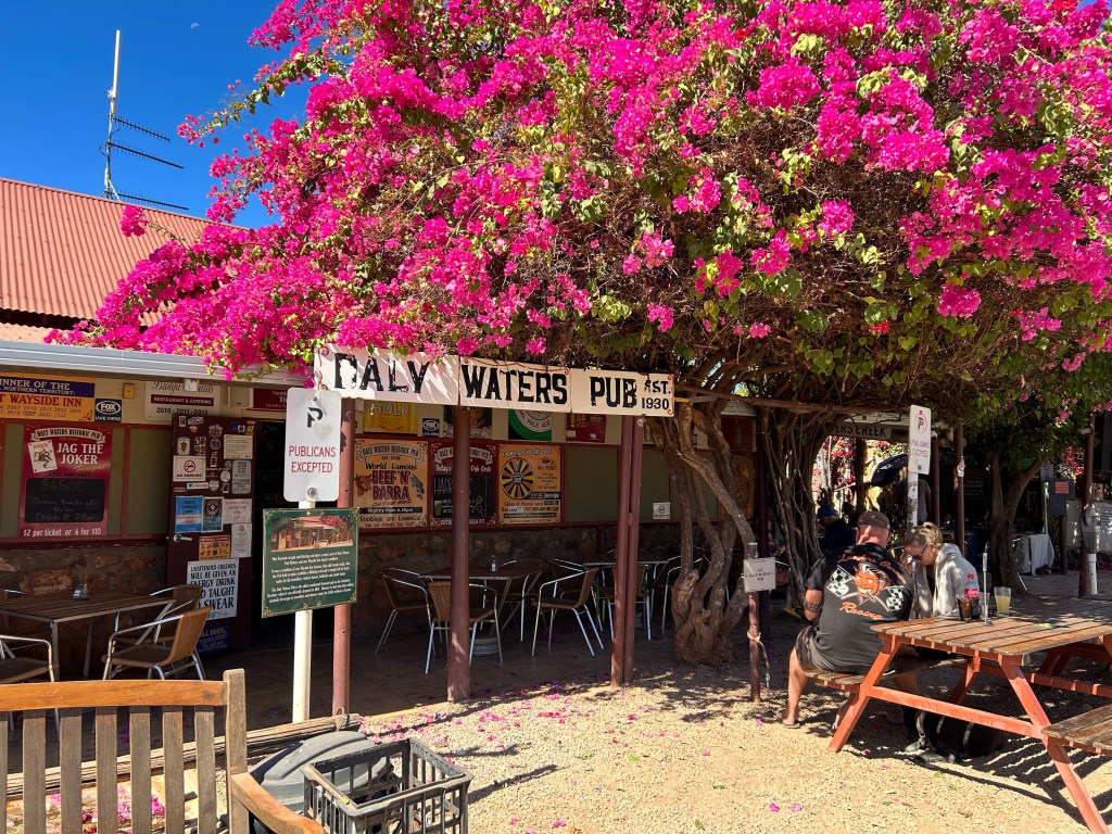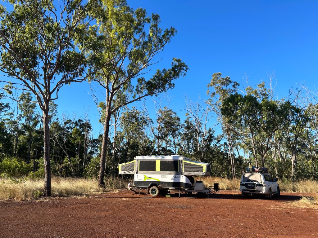 By the time we’d finished our lunch at Daly Waters the day was wearing on and we were low on petrol. We decided to pull in at a free camp and make an early morning sprint to Bitter Springs for a good spot!