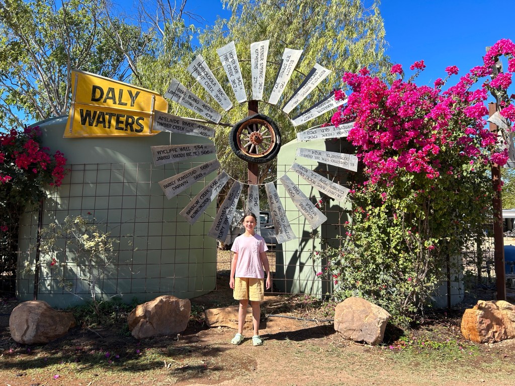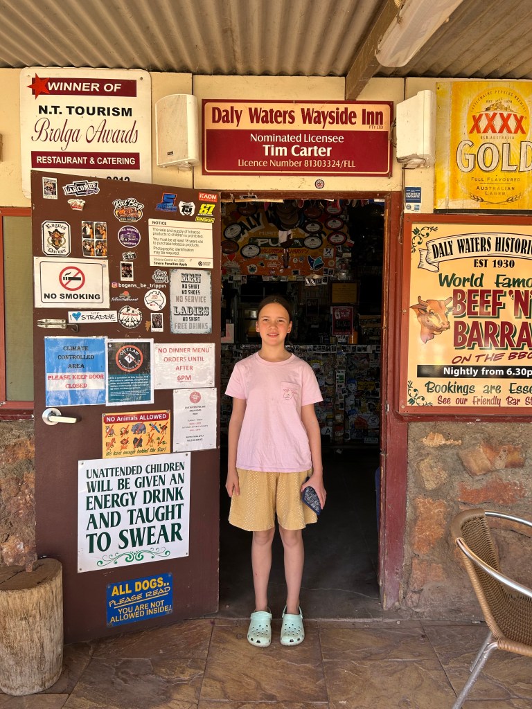 On the final leg we were tossing up whether to make it all the way to Mataranka, or stop at Daly Waters Pub or nearby and have an early start and a short, easy stretch the next day. A lot hinged on this whole transit planning as we needed to ensure we made it somewhere special in time for Lux’s birthday (the 27th July) with no need to move on the actual day. It was a gamble that the place we were targeting, Bitter Springs Caravan Park, would be a dreamy spot and worth two nights… and a birthday celebration! Sounds ridiculous but the plotting around this was quite stressful, compounded by the fact we couldn’t book Bitter Springs and it was a first in, first served system (which does not favour us).